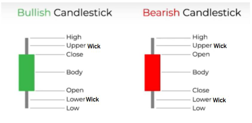 whereas a candlestick tells you the high, low, open and close at a given time period.