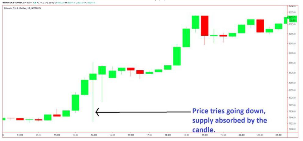 that a candle with long tail wick has seen the buyers being successful in pushing the price up